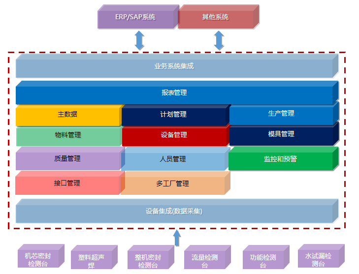 項目功能主要包括系統(tǒng)集成、倉儲管理、計劃工單、工藝管理、生產(chǎn)管理、包裝管理、返工管理、維修管理、追溯管理、電子看板、質(zhì)量管理、設(shè)備管理、備品管理等。