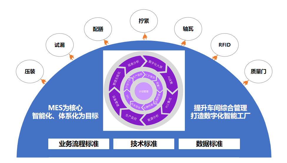 ③智能化生產(chǎn)管理決策、分析和知識(shí)積累,需要實(shí)施制造執(zhí)行系統(tǒng)(MES系統(tǒng)),助力公司打造智慧型車企。