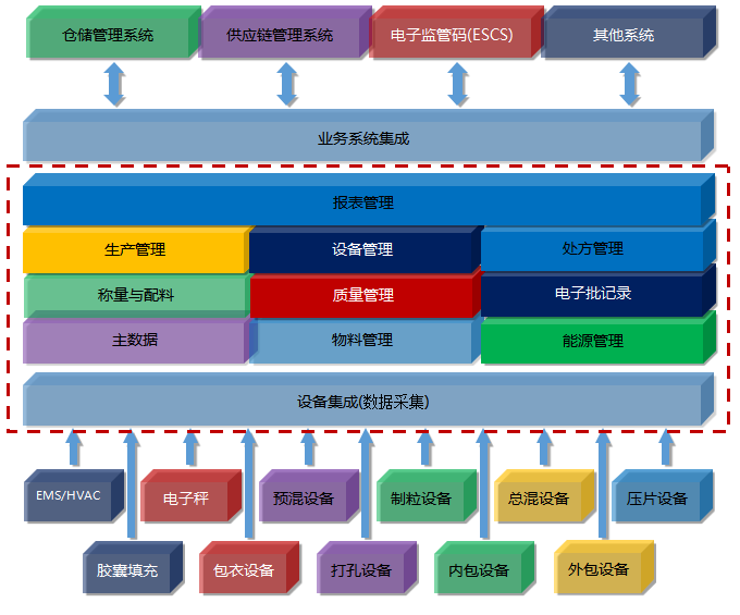 漢思實(shí)施物理范圍主要固體口服制劑車間,產(chǎn)品功能范圍涵蓋了業(yè)務(wù)系統(tǒng)集成,生產(chǎn)管理、設(shè)備管理、處方管理、稱量與配料、質(zhì)量管理、電子批記錄、物料管理、能源管理以及系統(tǒng)化集成等。