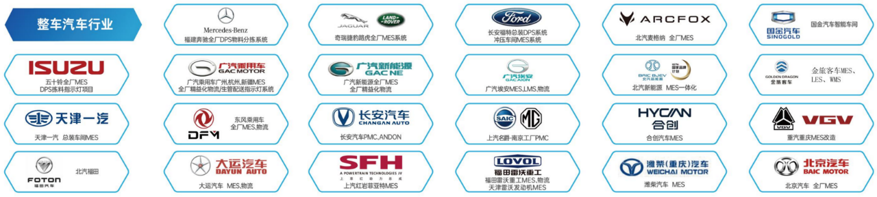 漢思信息在2008年成立之初,就深耕智能制造和企業(yè)數(shù)字化轉(zhuǎn)型領(lǐng)域,特別是在汽車行業(yè),實(shí)施了廣州乘用車廣州工廠、杭州工廠、廣汽埃安、北汽麥格納、江西五十鈴、長(zhǎng)安福特、奇瑞捷豹路虎、福建奔馳、金旅客車、中國(guó)重汽、北汽新能源、北京汽車、天津一汽、東風(fēng)乘用車、北汽福田、合創(chuàng)汽車、雷沃重工、大運(yùn)汽車、上汽紅巖菲亞特、山東麗弛新能源、新珠峰凱越摩托等項(xiàng)目,贏得了客戶的廣泛認(rèn)可,也為重汽重慶工廠MES項(xiàng)目的成功落地打下了良好的基礎(chǔ)。