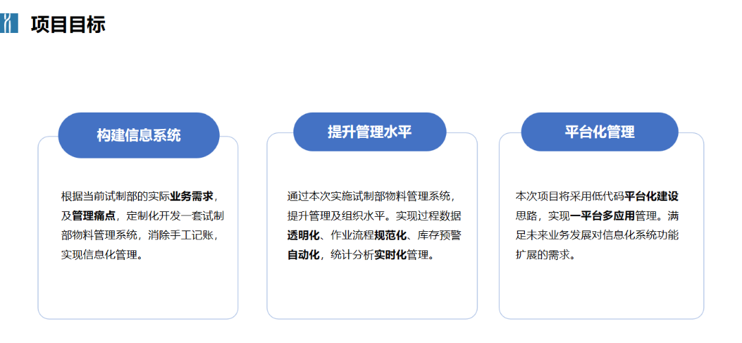 項(xiàng)目采用當(dāng)前主流的低代碼平臺(tái)進(jìn)行系統(tǒng)構(gòu)建,結(jié)合敏捷實(shí)施方式實(shí)現(xiàn)項(xiàng)目的快速搭建及交付。本次所用平臺(tái)支持多應(yīng)用管理,實(shí)現(xiàn)一平臺(tái)多應(yīng)用管理模式,可以完全滿足未來(lái)系統(tǒng)拓展需要。下一步將結(jié)合大長(zhǎng)江各業(yè)務(wù)需求及企業(yè)信息化布局進(jìn)行更深層次的合作。