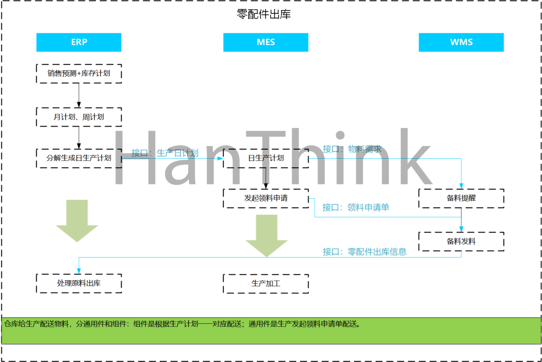 MES建設(shè)有助于完善工廠的整體信息化建設(shè),需要規(guī)劃并完成合適的系統(tǒng)間的集成交互場景。對于計劃和生產(chǎn)過程,MES與ERP、WMS/LES集成最緊密。