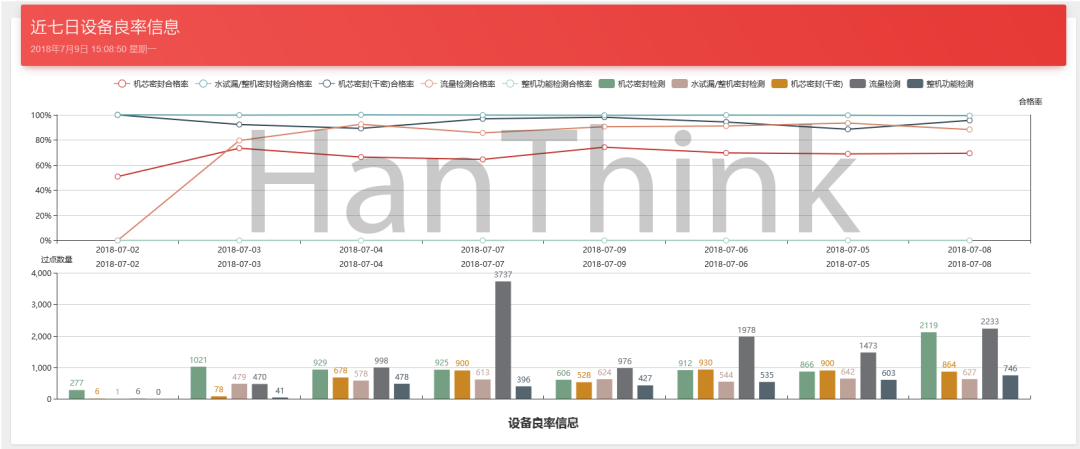 設(shè)備數(shù)據(jù)采集情況也可以查看統(tǒng)計看板,統(tǒng)計得到各類設(shè)備的良率信息。