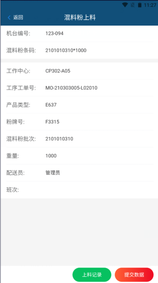 系統(tǒng)上線運行后,混料粉員通過手持終端掃描粉牌號、設(shè)備號進行上料,系統(tǒng)自動校驗上料粉牌與當(dāng)前開工工單粉牌一致性;粉牌批次不同時,系統(tǒng)自動生成新批次號,成形作業(yè)員也可以根據(jù)實際需要,如班次變化、模具更換、人為另設(shè)等情況,為報工設(shè)立新的批次號。