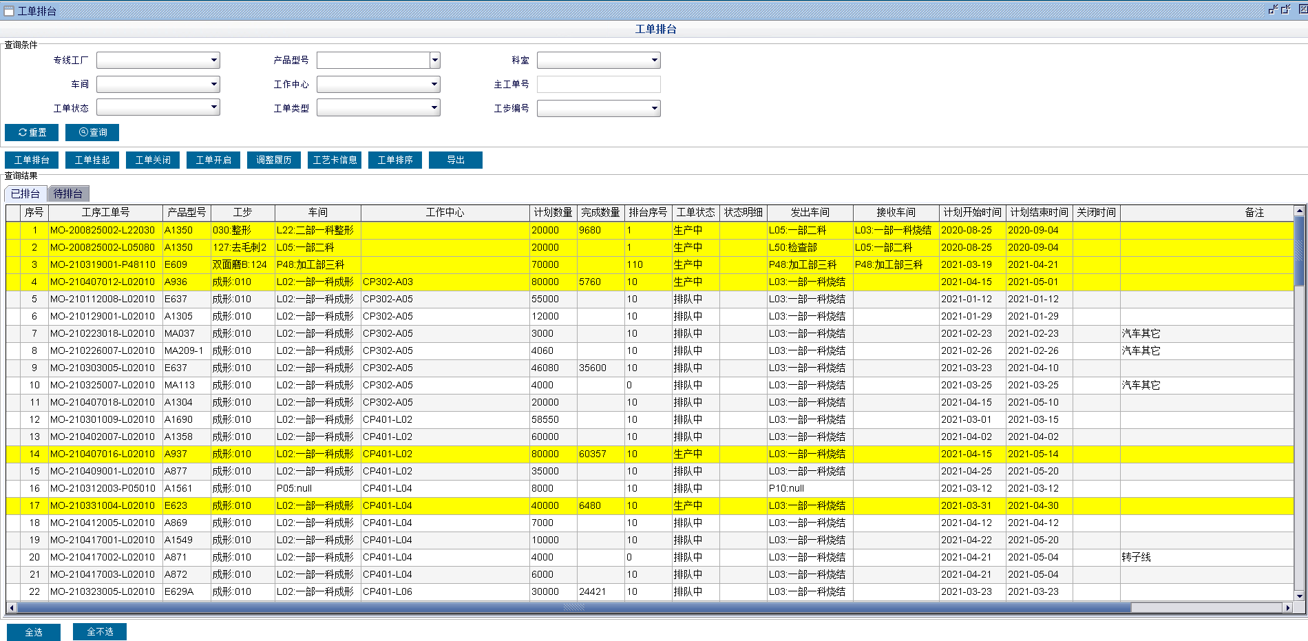 系統(tǒng)支持工作中心的計劃順序調(diào)整,若生產(chǎn)設(shè)備發(fā)生故障時,可將工單排臺到可正常生產(chǎn)的工作中心,實現(xiàn)生產(chǎn)工單的無縫生產(chǎn)對接。