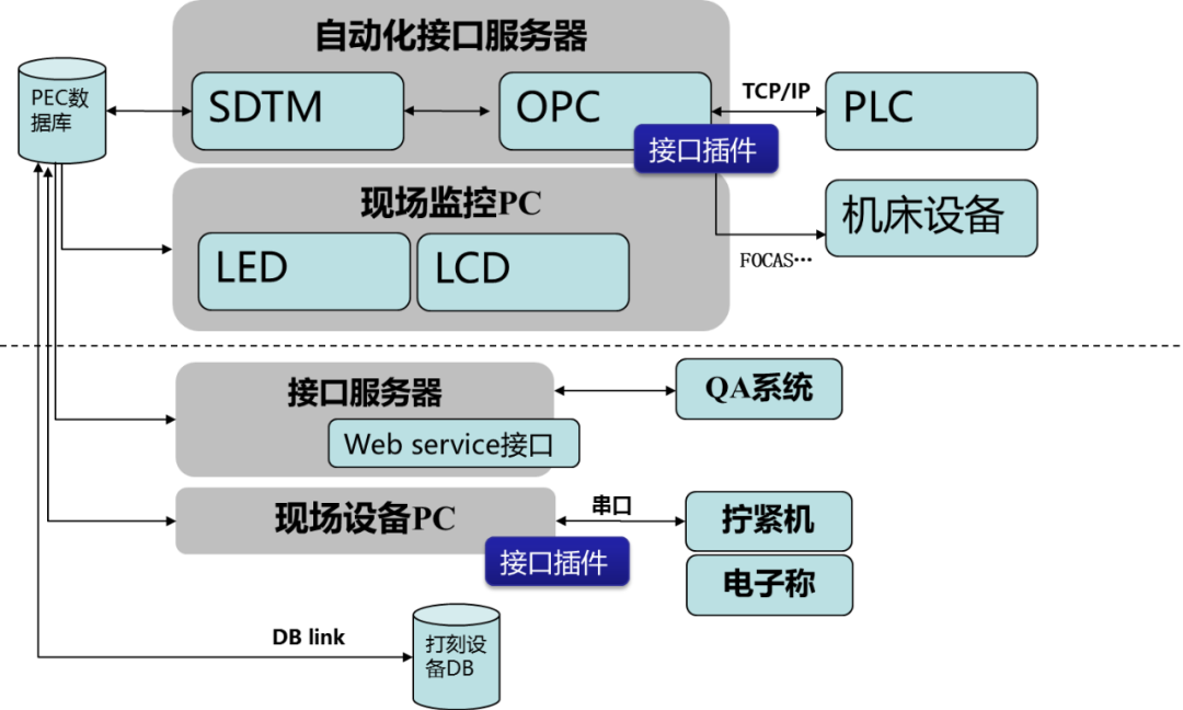 PEC層提供多種與車間設(shè)備接口方式,特別針對常用的設(shè)備,已有插件配置,可直接配置完成連接,例如阿特拉斯\馬頭的擰緊設(shè)備、Fanuc\西門子數(shù)據(jù)機(jī)床、梅特勒\賽多利斯的電子稱,這樣可以讓多工廠的PEC能盡量功能統(tǒng)一,維護(hù)簡單,以下是PEC常用接口: