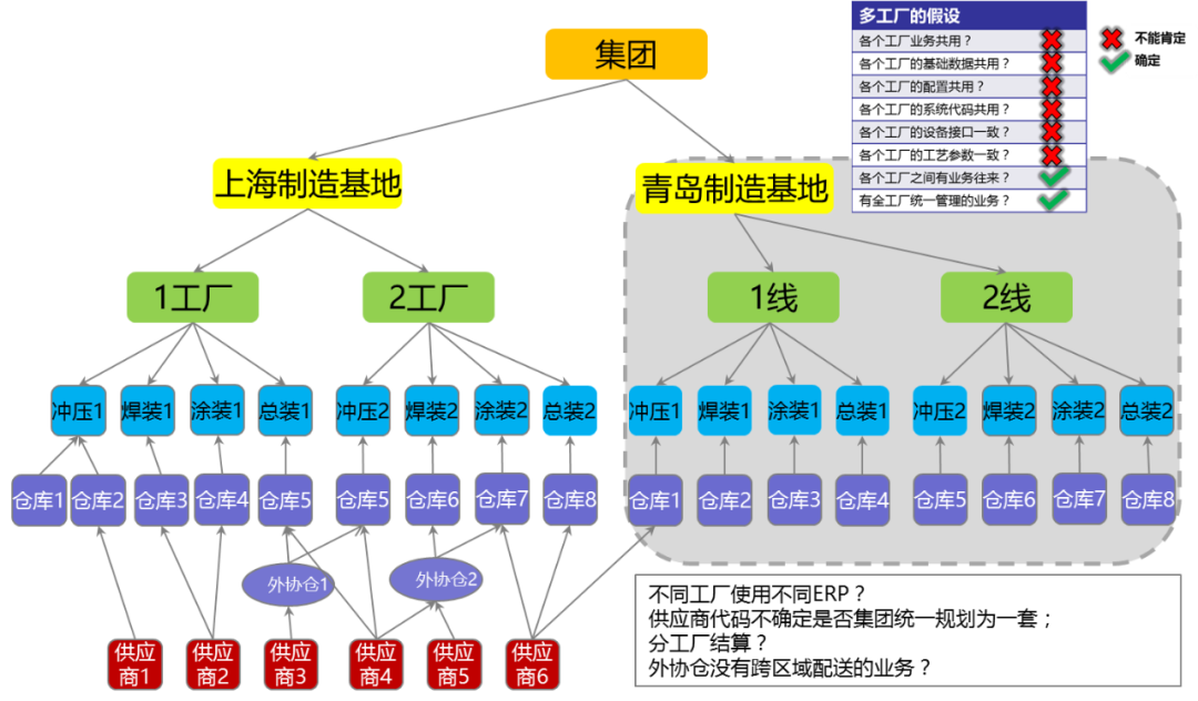 集團(tuán)+多工廠架構(gòu),從幾個方面來討論: