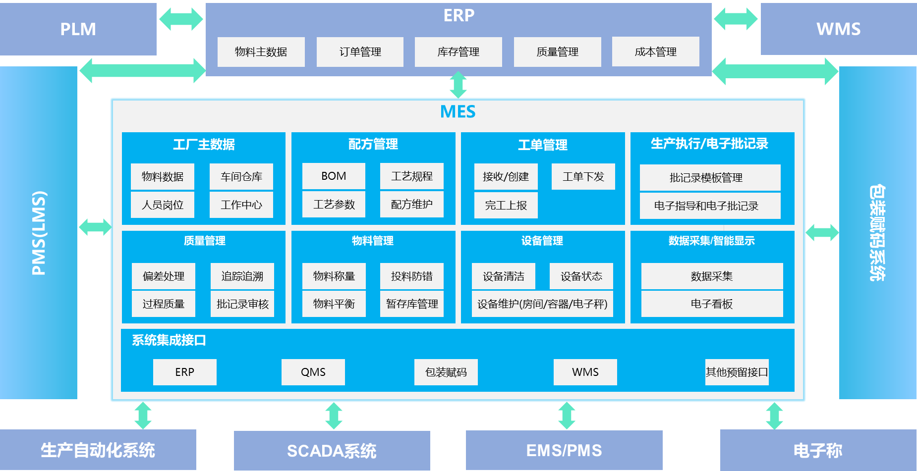 - 實現(xiàn)物料追蹤追溯、稱量配料、采集關(guān)鍵工藝參數(shù)、電子批記錄