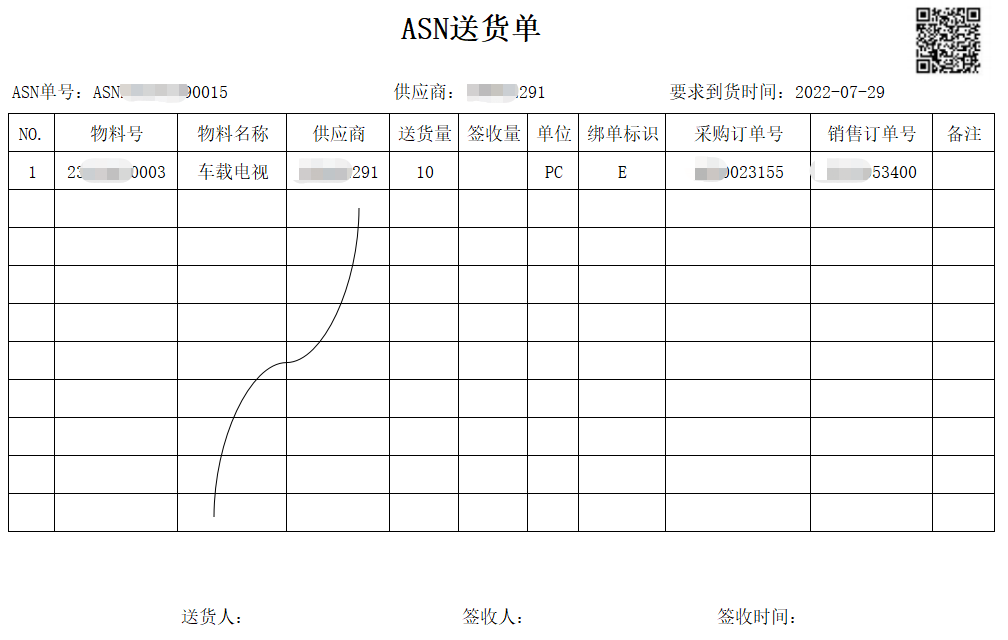 下采購訂單時(ERP或SRM)將對應(yīng)的銷售訂單號信息帶在訂單上,供應(yīng)商在交付此類物料時,送貨單信息里要回傳綁單信息(零件包裝的條碼或標(biāo)簽上也要有綁單件標(biāo)識)。
