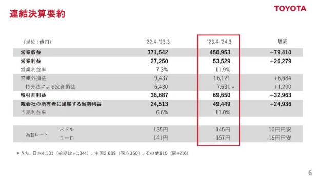 是哪塊短版呢?今年5月初,豐田汽車發(fā)布了2023財(cái)年(2023年4月-2024年3月)的財(cái)報(bào)。我們重點(diǎn)關(guān)注豐田的銷量和利潤(rùn)。2023財(cái)年,豐田銷售了大約1000萬(wàn)輛汽車,利潤(rùn)高達(dá)約2500億元。