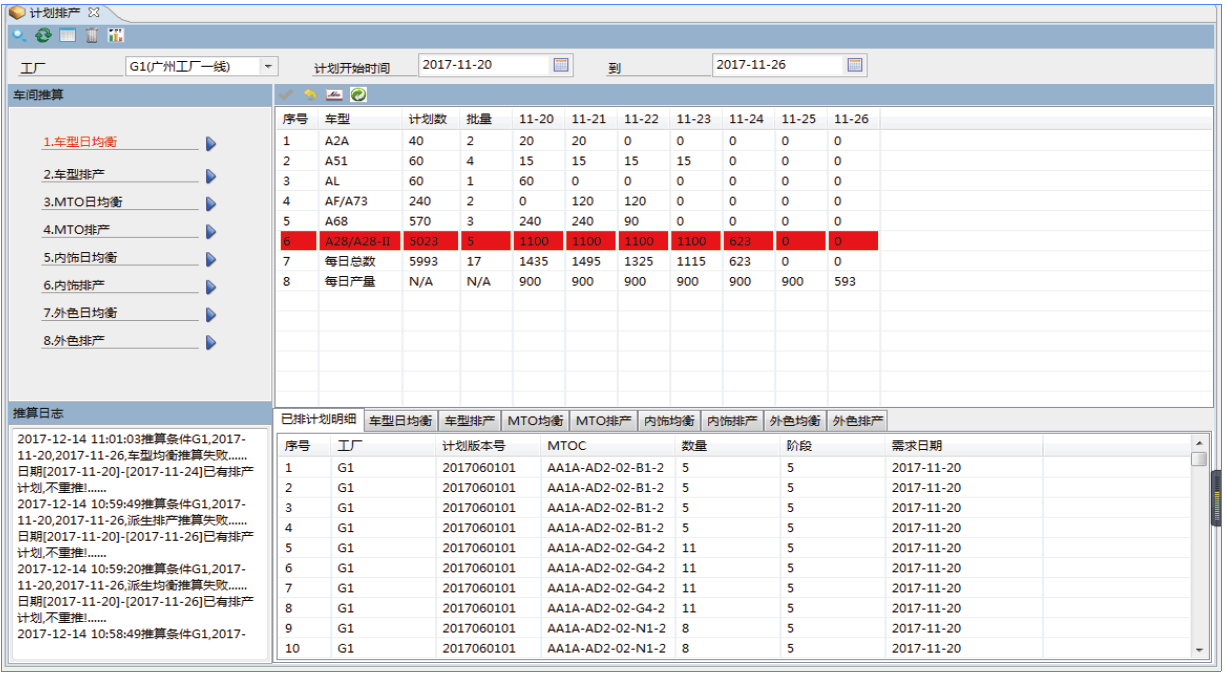 生產計劃:汽車總裝、噴涂和焊裝的生產模式主要是按照生產線流水作業(yè),按照生產線節(jié)拍、工位送料的方式來組織生產,是一種準時化生產方式,而沖壓車間的生產則不同,屬于多品種小批量的生產組織方式。這兩種不同的生產特點,構成了我國汽車企業(yè)的混合式生產計劃組織的特點。汽車行業(yè)的生產計劃管理功能,關注以生產物料和設備為對象,按照生產單元進行排程,以執(zhí)行為導向,考慮約束條件,把上位系統(tǒng)ERP等系統(tǒng)傳遞下來的生產訂單打散,重新計劃生產排程,保證及時將車間生產實際信息上傳至上位系統(tǒng),是基于時間的有限產能計劃管理。