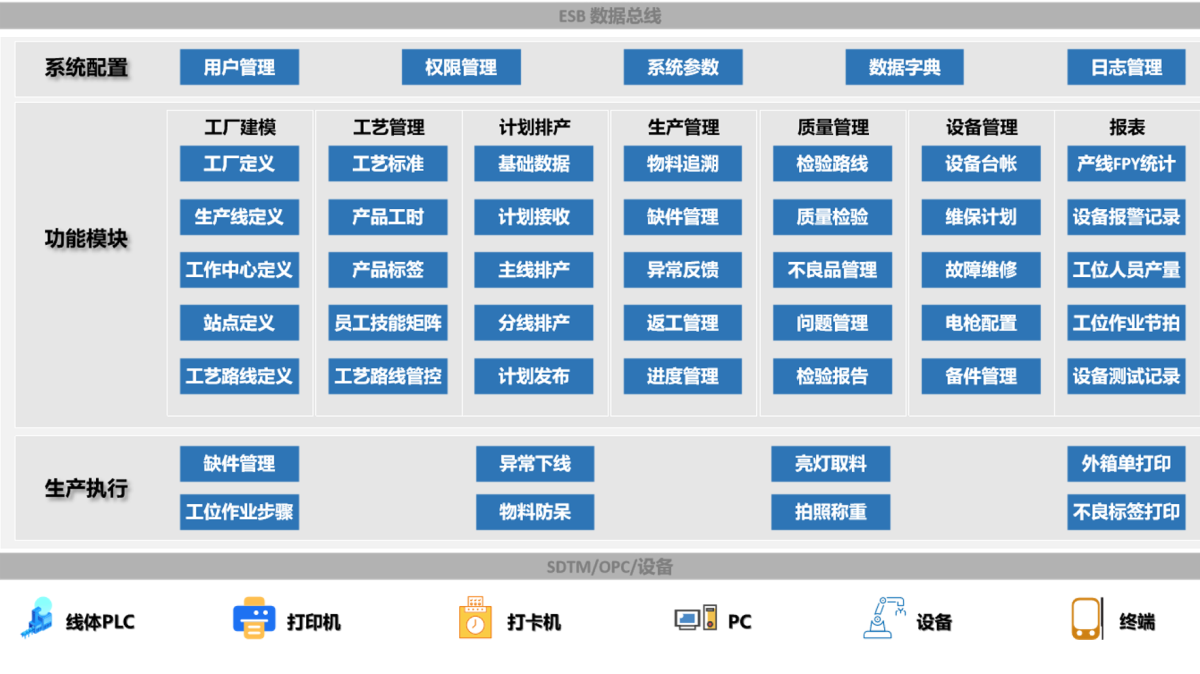 包含從人員技能管理、缺件管理、返工管理、設(shè)備管理、BOM圖紙管理等,功能模塊覆蓋生產(chǎn)執(zhí)行全過程