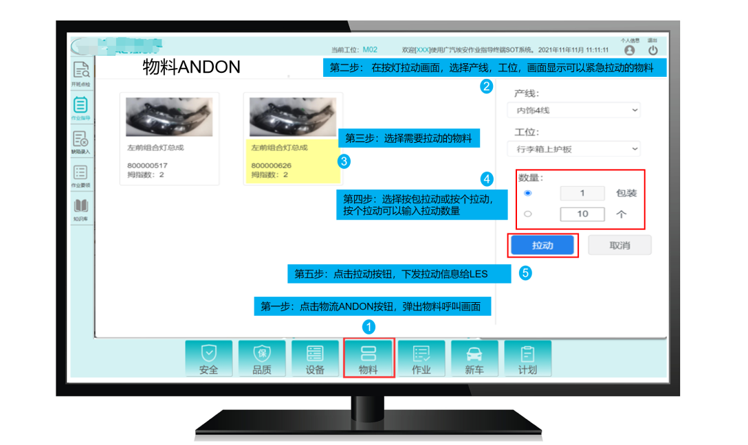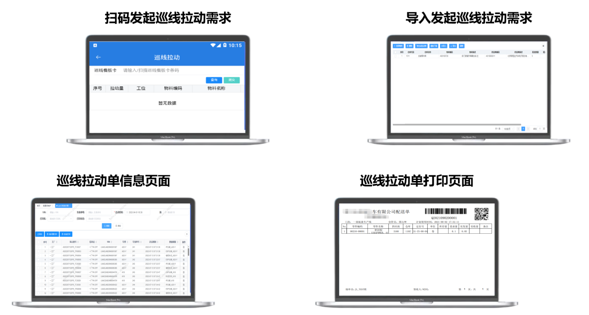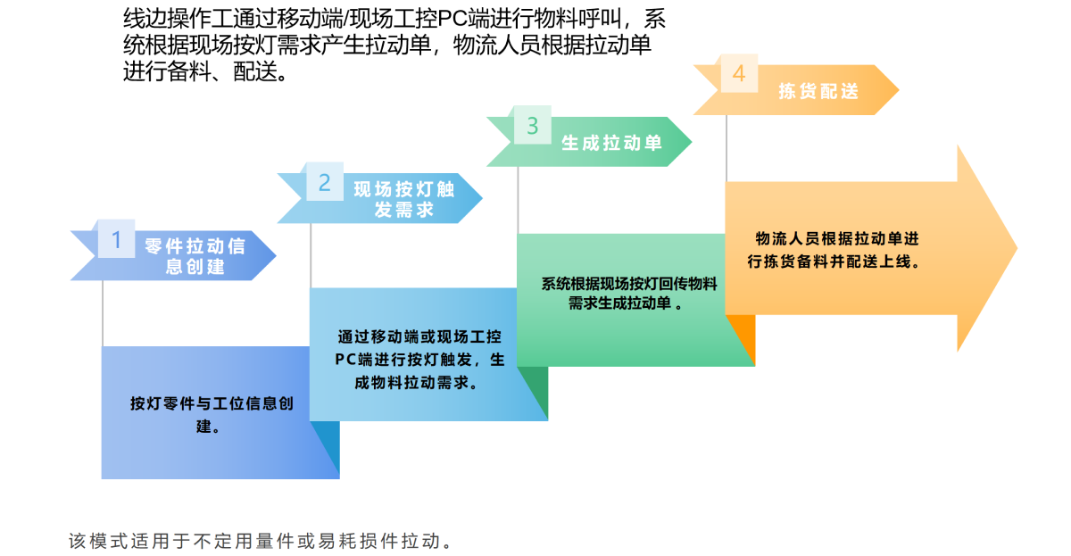 由線邊操作工通過移動端/現(xiàn)場工控PC端進行物料呼叫,提出需求